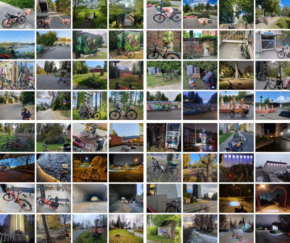 Ensimmäinen kuva: edellisen osallistujan paikka, jossa näkyy pyöräsi (paikan tunnistuskuva).